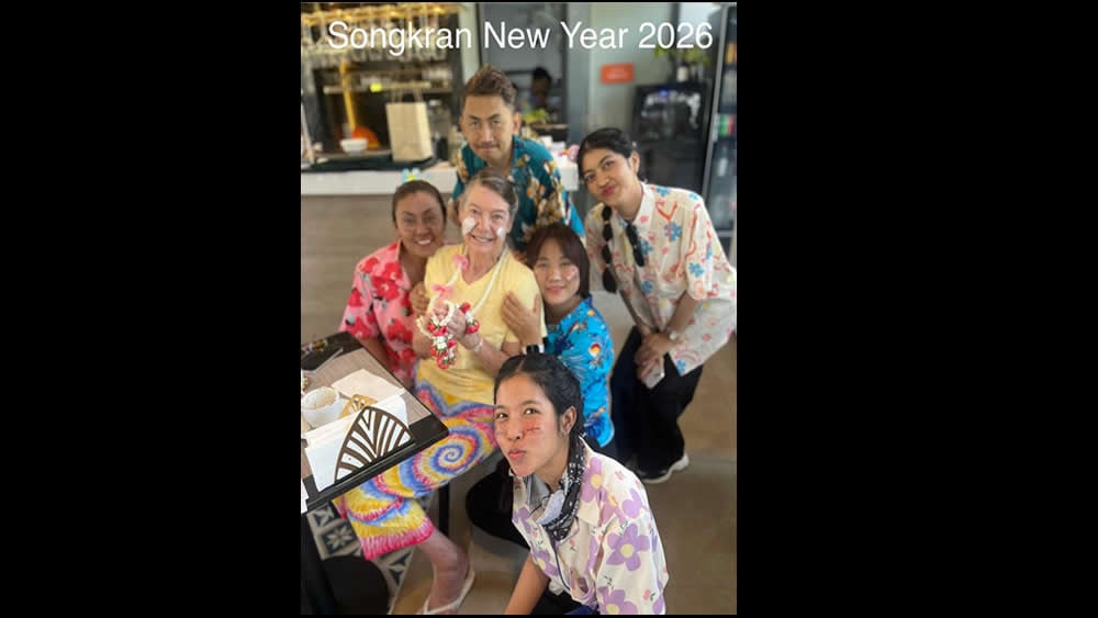 Our friend Janett and the staff of the lounge and restaurant. Gam. Lek, Golf, Fin and Paul.